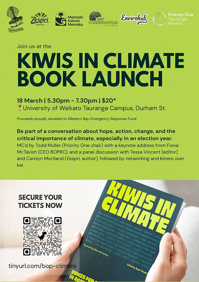 The launch will be MC'd by Todd Muller (Priority One chair) with a keynote address from Fiona McTavish (CEO BOPRC), and a panel discussion with Tessa Vincent (editor) and Carolyn Mortland (Zespri, author), followed by networking and conversation over kai.